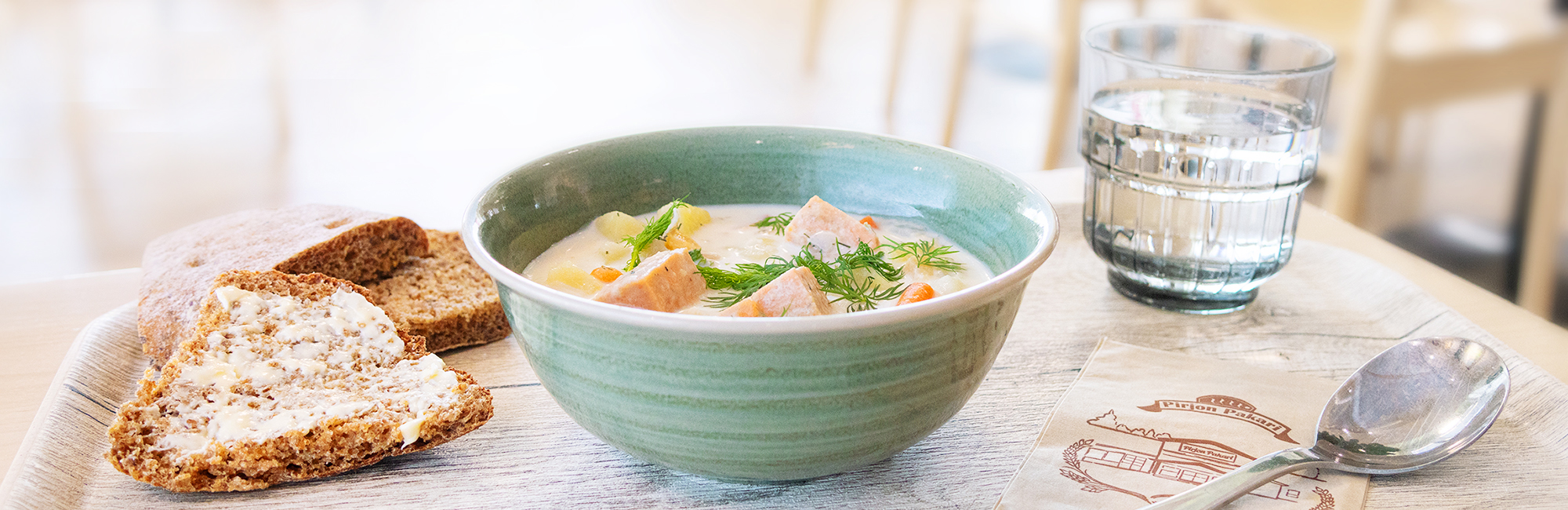 Keittolounas 9,60 € (Lapset 3–12 v. 4,50 €)