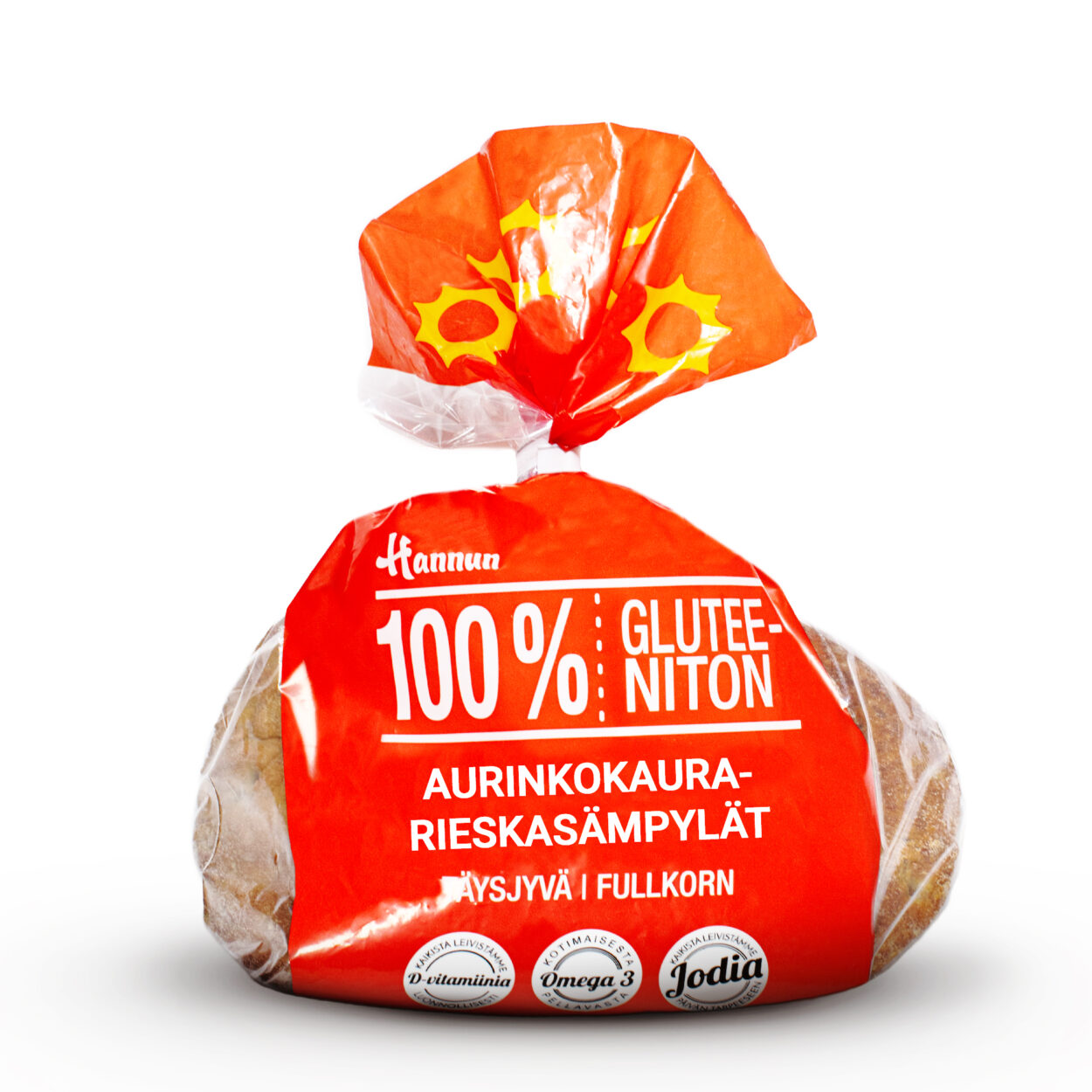 Vesi, täysjyväKAURAhiutale* ja -jauho* (22 %), maissijauho (GMO-vapaa), auringonkukansiemen, pellava, täysjyväriisijauho*, sokeri, rypsiöljy, kasvikuitu (psyllium), D-vitaminoitu hiiva, jodioitu suola (0,9 %), sakeuttamisaine (E415), säilöntäaine (E202). *Täysjyvän osuus viljaraaka-aineista 72 %, valmiissa tuotteessa 26,4 % täysjyväviljaa.