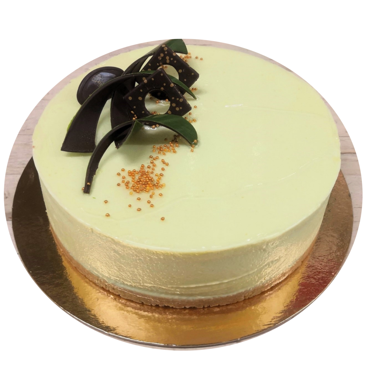 Vihreä omena juustokakku digestive pohjalla. Vain koristeissa laktoosia.