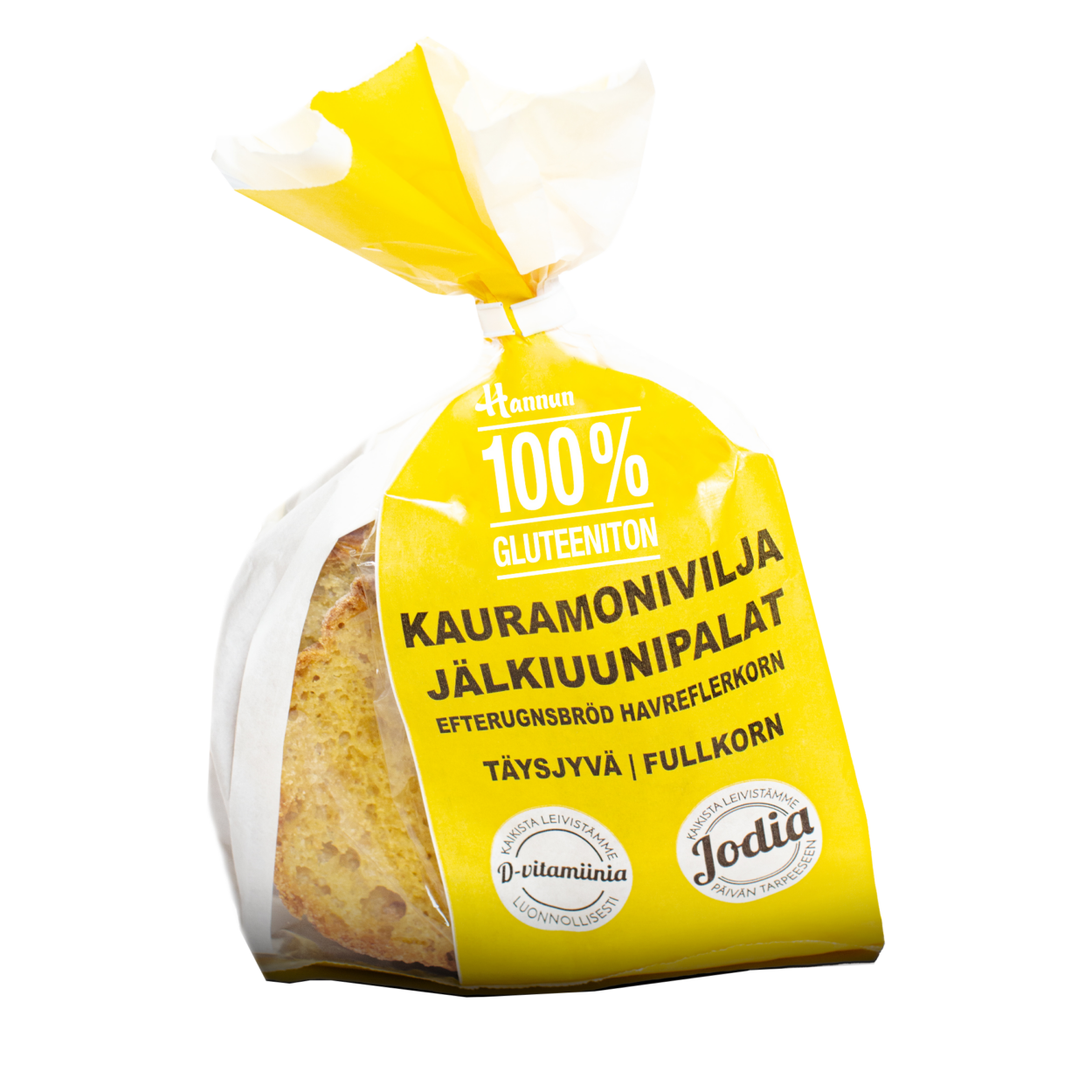 Vesi, maissijauho (GMO-vapaa), täysjyväriisijauho*, täysjyväpuhdas kaurahiutale* (20 %), rypsiöljy, sokeri, D-vitaminoitu hiiva, jodioitu suola (1,5 %), kasvikuitu (psyllium), sakeuttamisaine (E415), säilöntäaine (E202). *Täysjyvän osuus viljaraaka-aineista 64 %, valmiissa tuotteessa 41 % täysjyväviljaa.